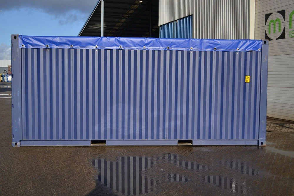 Constructed from Corten steel, this container provides exceptional durability and corrosion resistance in harsh marine or industrial environments. The open top is covered with a removable tarpaulin that’s secured by steel roof bows and reinforced corner fittings, ensuring cargo remains safe and dry during transit.